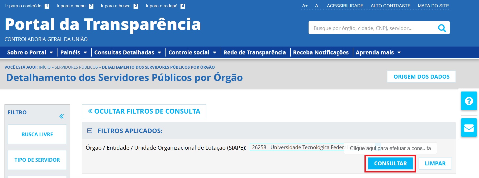 Passo-a-passo: servidores lotados na UTFPR - Portal da Transparência