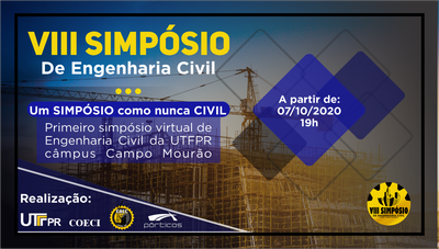 O VIII SIMPÓSIO DE ENGENHARIA CIVIL será o primeiro simpósio virtual promovido pela Coordenação de Engenharia Civil da UTFPR – Câmpus Campo Mourão .