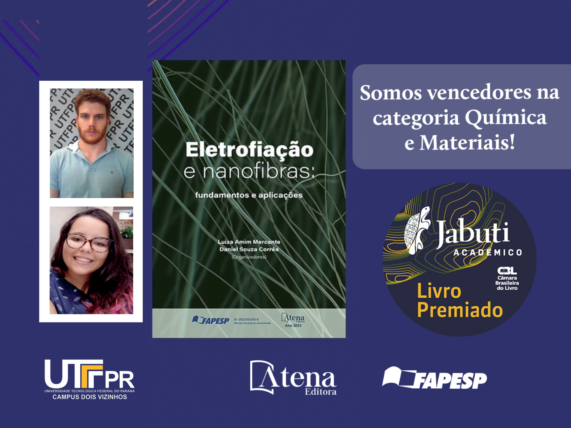 Entre os premiados no ano de 2024, no eixo Ciência e Cultura, na categoria Química e Materiais, está o livro "Eletrofiação e nanofibras: fundamentos e aplicações", organizado por Luiza Amim Mercante, professora da Universidade Federal da Bahia (UFBA), e Daniel Souza Corrêa, pesquisador da Embrapa.