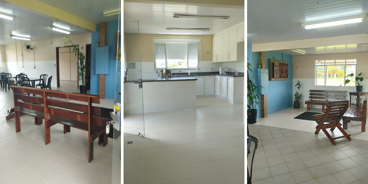 - Cozinha dos servidores: reforma e troca do revestimento cerâmico do piso, construção e revestimento de novas bancadas, proporcionando um ambiente mais moderno e funcional. Essa obra foi realizada devido aos problemas existentes na estrutura antiga, que ofereciam riscos aos usuários (piso estava cedendo).