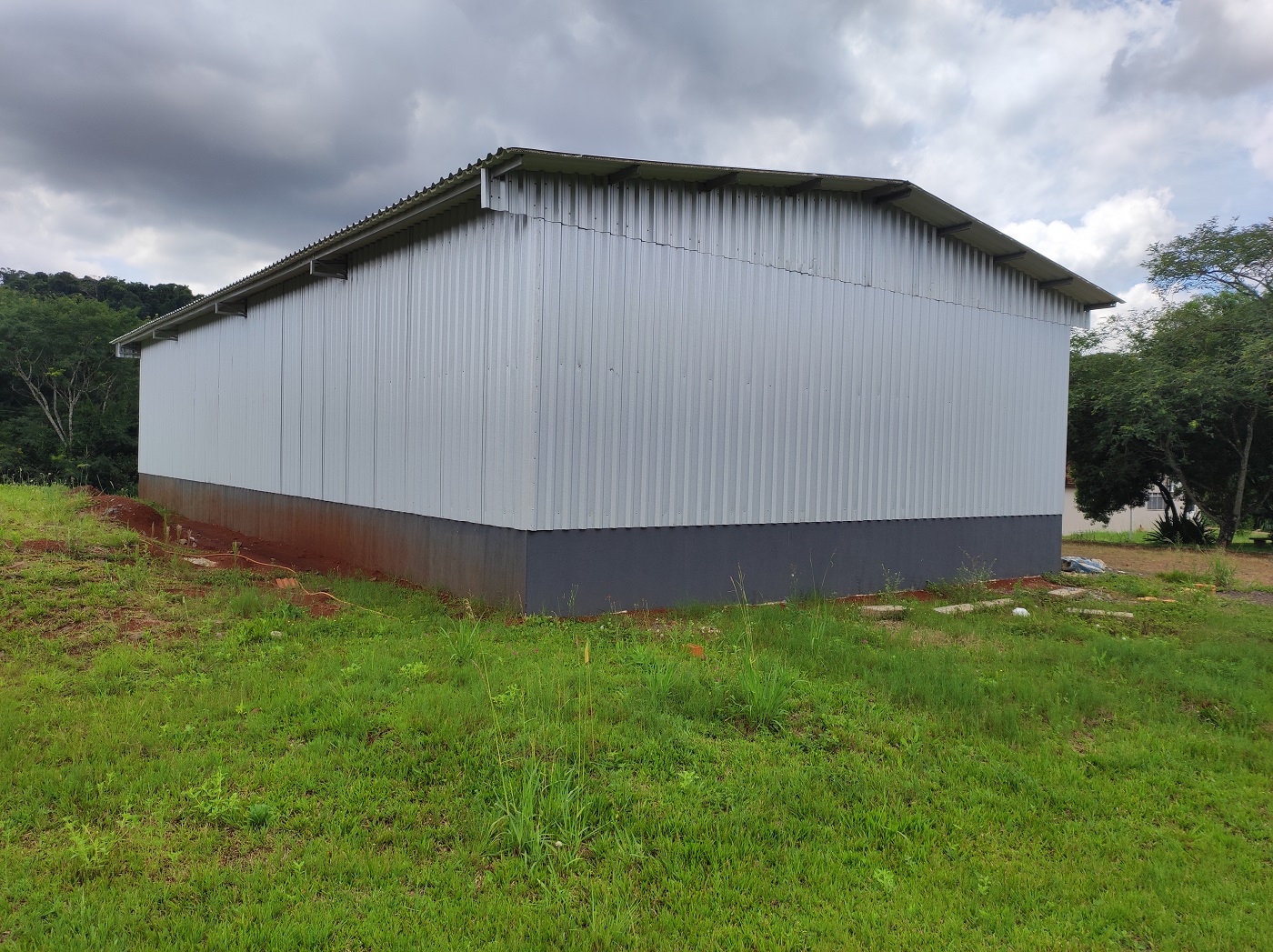 - Barracão de máquinas: fechamento, com folhas de zinco, das laterais do barracão que abriga máquinas e equipamentos agrícolas, e colocação de container na lateral para armazenamento de sementes e insumos.