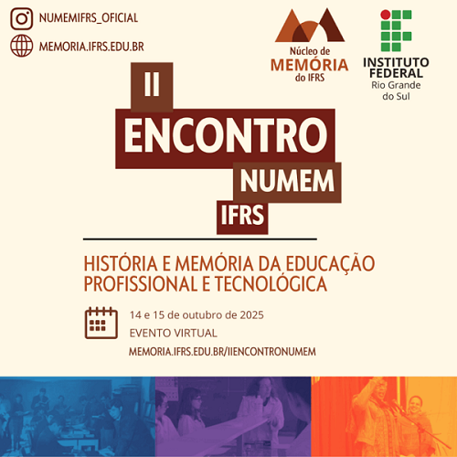 Mais informações sobre o evento podem ser consultadas no site oficial: https://memoria.ifrs.edu.br/iiencontronumem/
