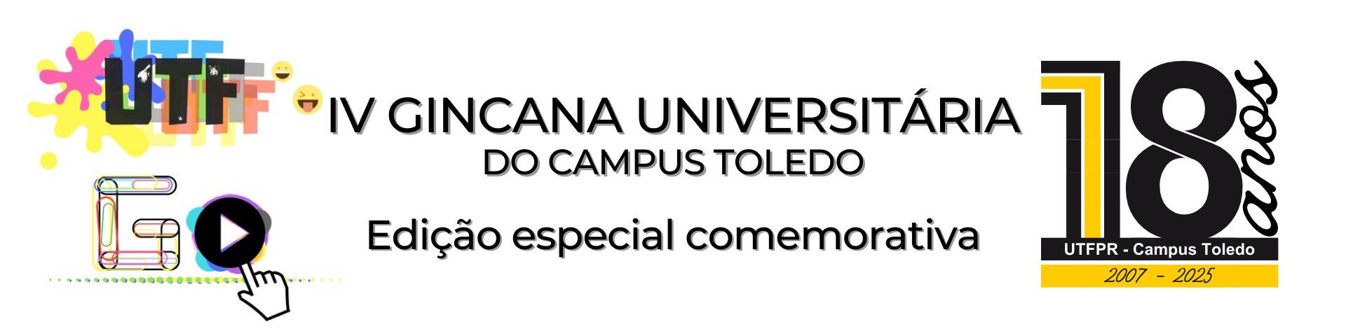 No dia 07 de junho de 2025, o Ginásio Poliesportivo da UTFPR - Campus Toledo será palco de muita integração, diversão e espírito de equipe com a realização da IV GINCANA UNIVERSITÁRIA – UTFGO, edição especial, comemorativa do aniversário de 18 anos do campus.