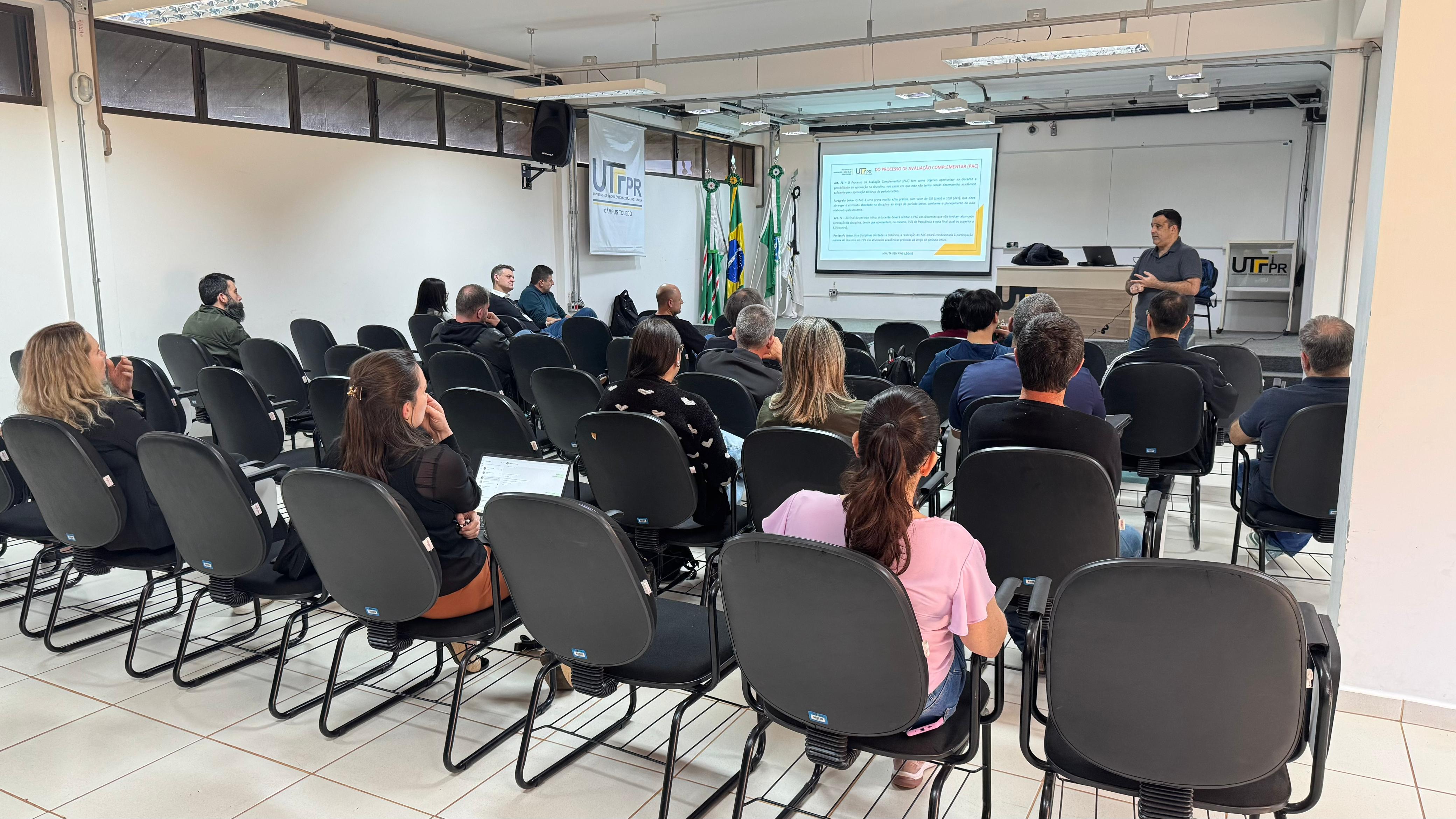 O Campus Toledo da UTFPR recebeu hoje (27) a visita do Pró-reitor de Graduação Adjunto, Professor Marcelo Souza Motta. O objetivo do encontro foi apresentar às coordenações de curso a minuta do novo regulamento de graduação e as novidades do Marco Legal da Educação a Distância (EaD), promovendo um debate sobre as futuras diretrizes dos cursos.