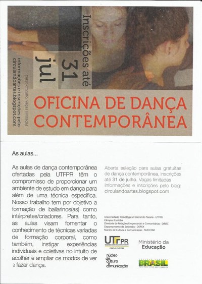 As aulas de dança contemporânea ofertadas na UTFPR têm o compromisso de proporcionar um ambiente de estudo em dança para além de uma técnica específica, para tanto, as aulas visam fomentar o conhecimento de técnicas variadas de formação corporal, como também, instigar experiências individuais e coletivas no intuito de acolher e ampliar os modos de ver e fazer dança.