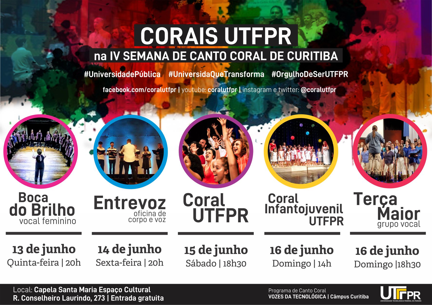Pela primeira vez cs cinco corais do câmpus Curitiba estarão presentes na programação sendo que o Coral UTFPR (o grupo principal) participa desde a primeira edição.