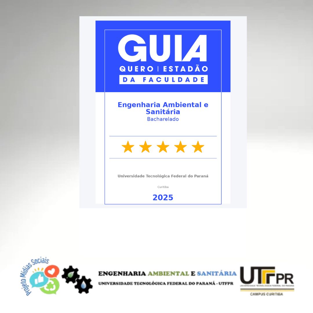 O Curso de Engenharia Ambiental e Sanitária da Universidade Tecnológica Federal do Paraná (UTFPR), campus Curitiba , foi contemplado com a nota máxima de cinco estrelas na última edição do Guia Quero Estadão da Faculdade, publicação de referência nacional que avalia a qualidade do ensino superior brasileiro.