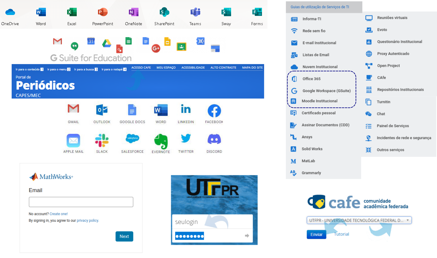 A UTFPR oferece uma ampla gama de serviços e recursos digitais para apoiar o desenvolvimento acadêmico dos alunos. Clique abaixo para acessar utilizar esses servisos e recursos, incluindo redes sem fio, e-mail institucional, ferramentas de colaboração como Office 365 e GSuite, serviços de nuvem, reuniões virtuais, acesso remoto a bibliotecas e repositórios, além de diversas outras plataformas essenciais como MATLAB, Grammarly, e Solid Works. Explore também as opções de suporte em TI, como proxy autenticado, CAFe, e serviços de chat e transmissão web, que facilitam o acesso a todos os recursos necessários para uma experiência acadêmica completa e integrada.