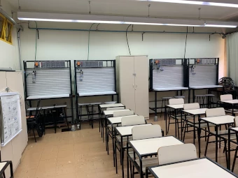 Área 74,86m², capacidade para 22 alunos; contando com: 1 planta didática para controle de temperatura, 1 planta didática para controle de PH, 1 planta didática para controle de pressão, 1 planta didática para controle de vazão, 1 planta didática para controle de nível, 1 planta didática SMAR didatic, 1 planta didática FESTO. |