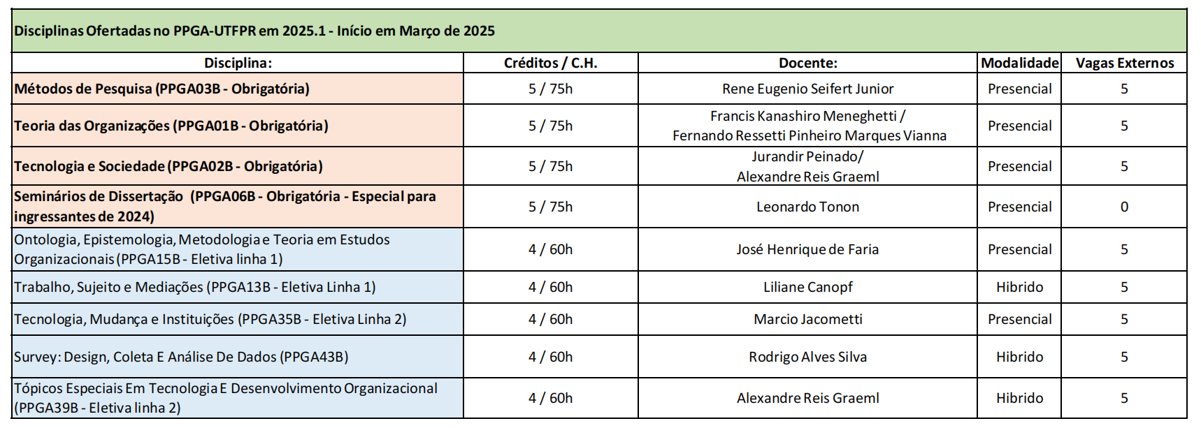 - O formulário tem o objetivo de promover as inscrições para a possível participação da comunidade externa nas disciplinas do Programa de Pós-Graduação em Administração da Universidade Tecnológica Federal do Paraná para o primeiro semestre de 2025.1. Responda o formulário atráves do link (clicando aqui)!