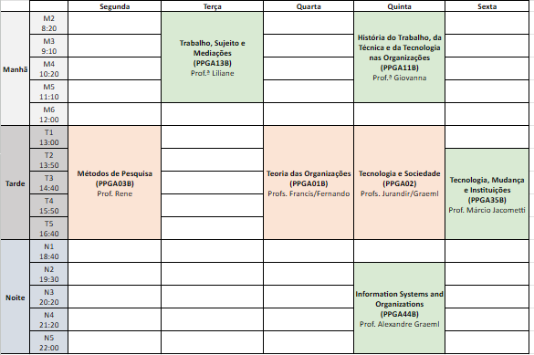 PPGA13 | 60h | 4 | Tecnologia de Gestão, trabalho e Organizações | |