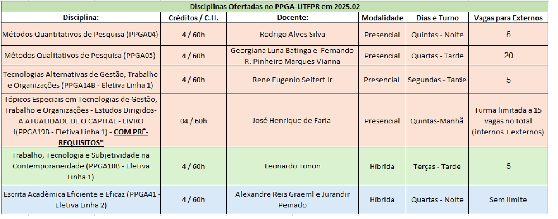 - O formulário tem o objetivo de promover as inscrições para a possível participação da comunidade externa nas disciplinas do Programa de Pós-Graduação em Administração da Universidade Tecnológica Federal do Paraná para o segundo semestre de 2025.2. Responda o formulário (clicando aqui)