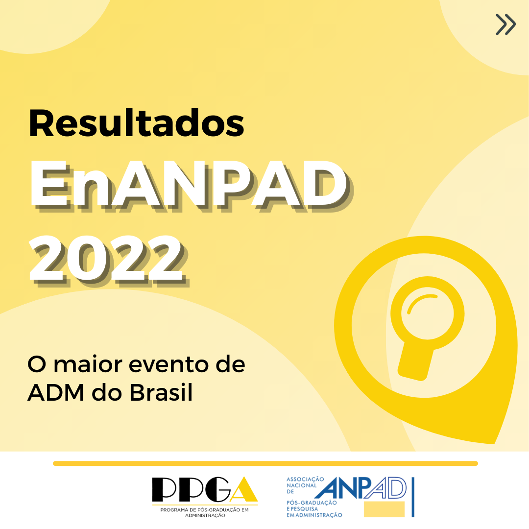 Entre 21 e 23 de setembro de 2022 ocorrerá a XLVI EnANPAD, evento realizado pela Associação Nacional de Pós-Graduação e Pesquisa em Administração (ANPAD) que tem por objetivo promover o debate e estimular a discussão entre os participantes.