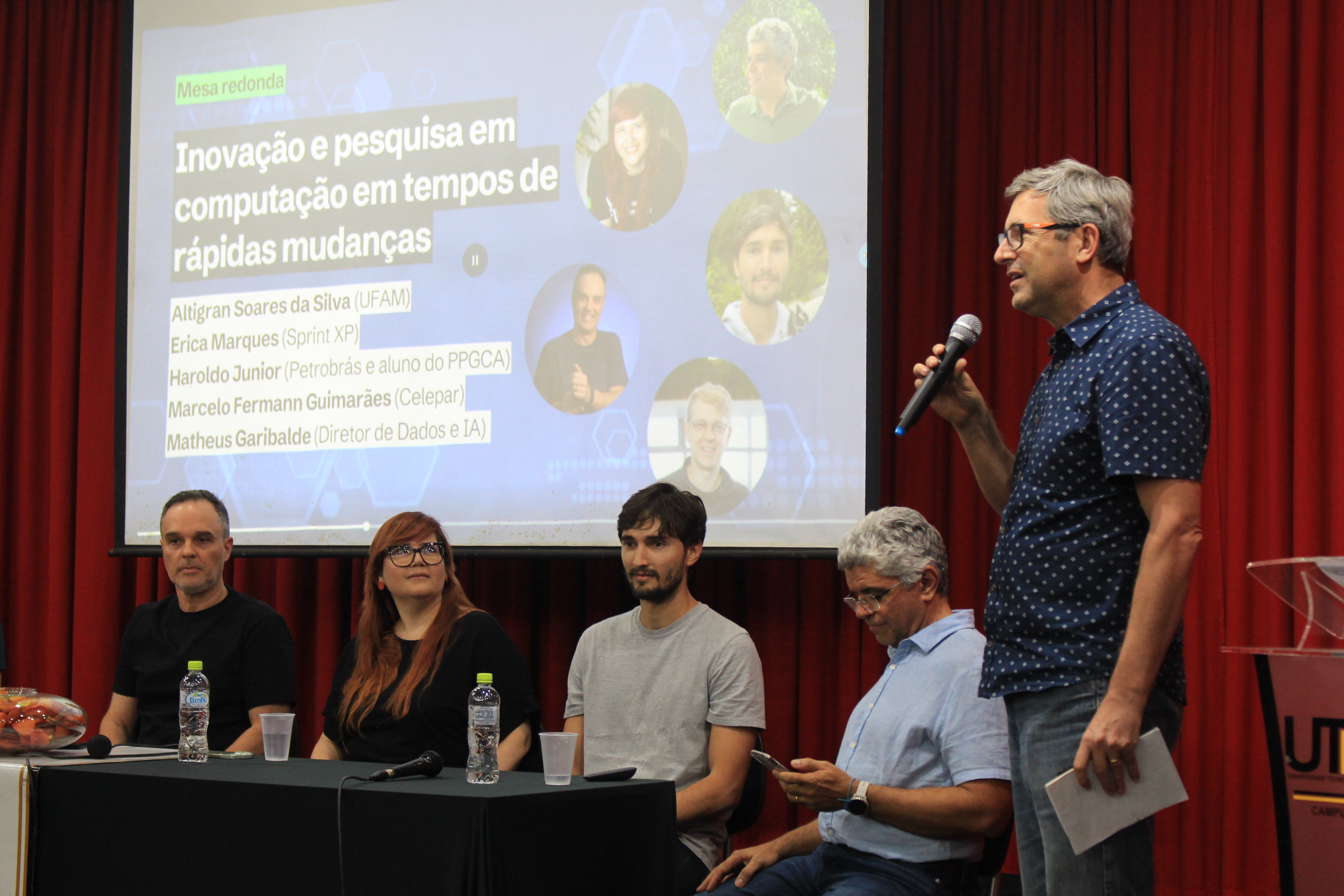 Outro ponto alto do evento foi a mesa-redonda sobre o tema “Inovação e pesquisa em computação em tempos de rápidas mudanças”. O debate contou com a participação de representantes de empresas e instituições públicas, como Erica Marques (Sprint XP), Haroldo do Rosário Vieira Júnior (Petrobrás e aluno do PPGCA), Marcelo Fermann Guimarães (Celepar), Matheus Garibalde (Diretor de Produto de Dados e IA) e Altigran Soares (UFAM). A discussão abordou os desafios e oportunidades da computação em um cenário de constantes transformações tecnológicas.
