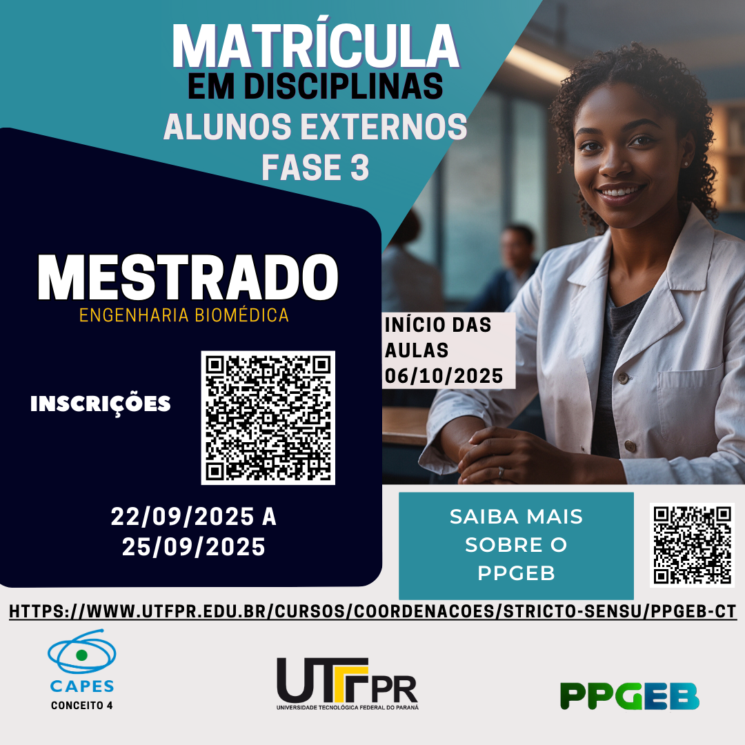 Publicado os horários das disciplinas da Fase 3 do PPGEB - Matrículas para externos e regulares em breve