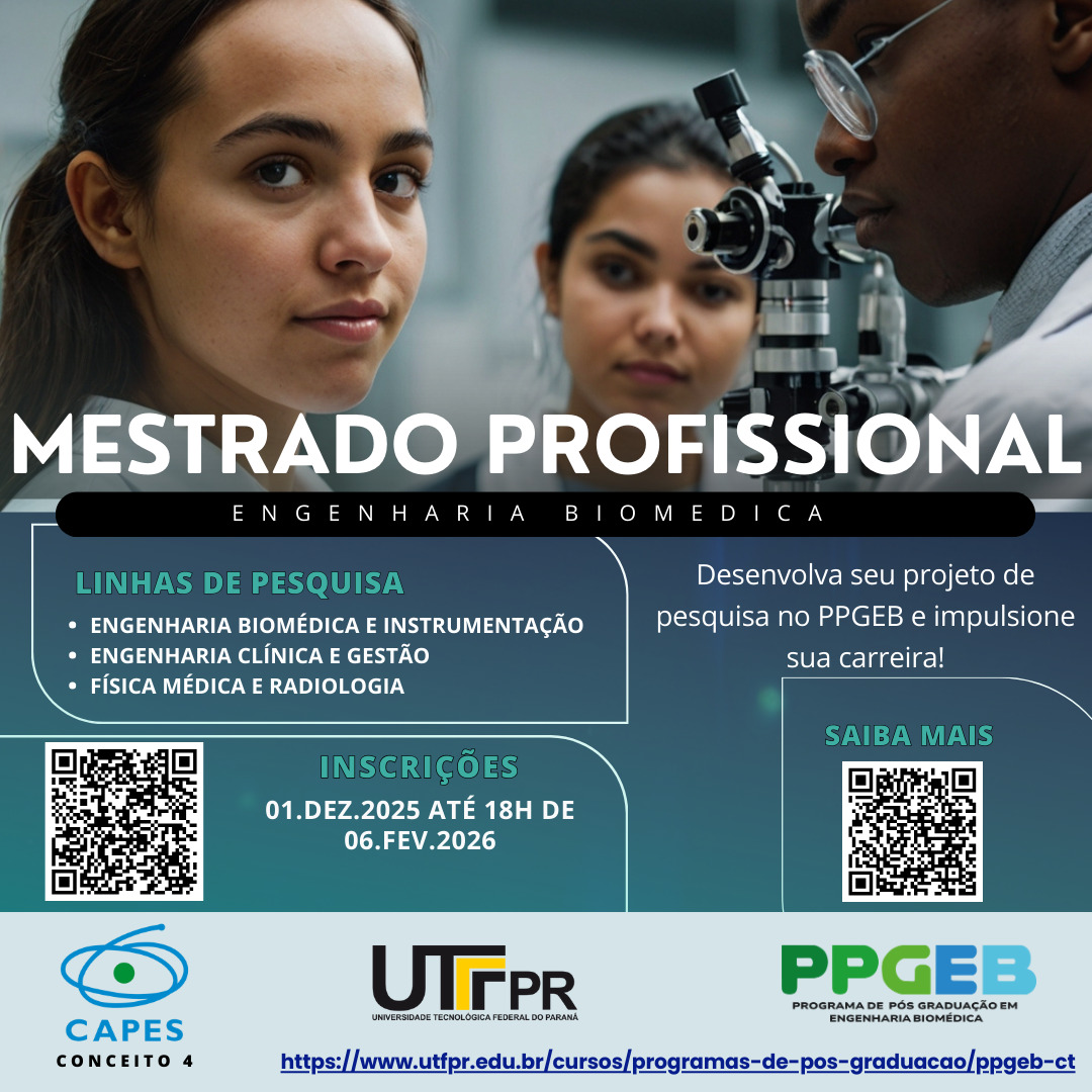 Inscrições abertas para processo seletivo Entrada 1/2026 no Mestrado Profissional em Engenharia Biomédica