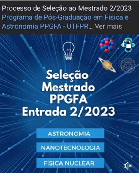 A Universidade Tecnológica Federal do Paraná, por meio do seu Programa de Pós-Graduação em Física e Astronomia (PPGFA), torna público, para conhecimento dos interessados, o processo de seleção dos candidatos ao referido programa.