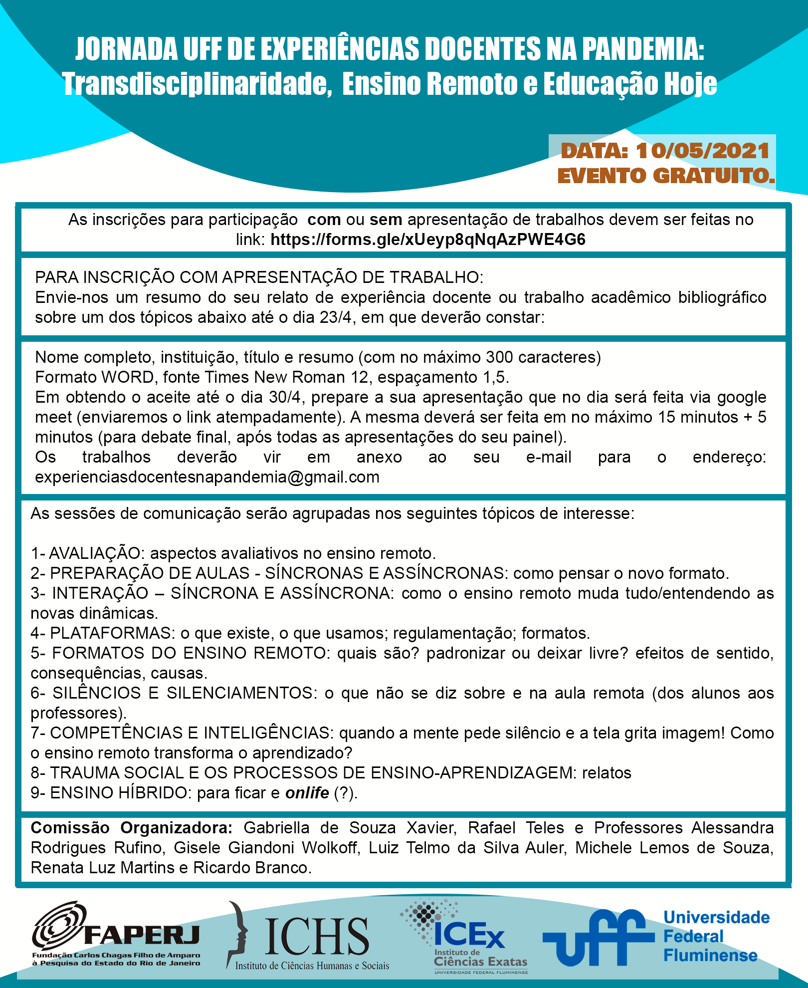 JORNADA UFF DE EXPERIÊNCIAS DOCENTES NA PANDEMIA: Transdisciplinaridade, Ensino Remoto e Educação Hoje