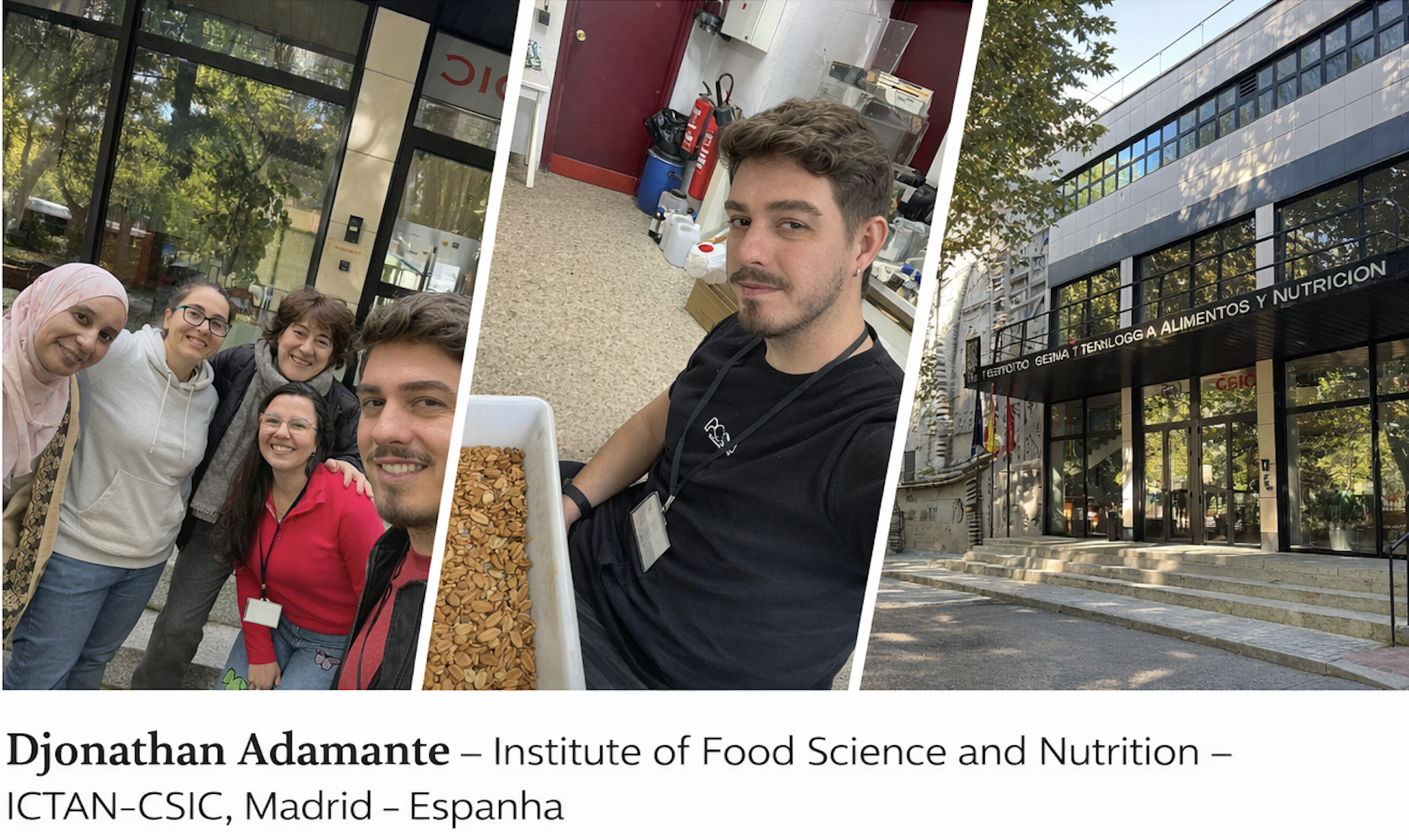 O Programa de Pós-Graduação em Tecnologia de Alimentos (PPGTA) destaca a realização de parte do doutorado do discente Djonathan Adamante, na área de produtos cárneos, junto ao Instituto de Ciência e Tecnologia de Alimentos e Nutrição – ICTAN-CSIC, localizado em Madrid, Espanha.