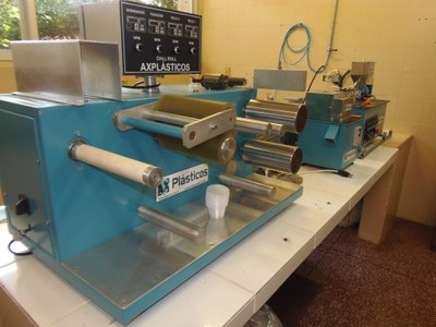 Conjunto de extrusão de bancada, marca AX, modelo “AX 16 TRÊS EM UM”, composto por mini extrusora modelo AX 16:26, painel de controle embutido no equipamento, Linha de frente para filme plano (Cast Film), Linha de frente para granulação e dispositivo para injetar corpos de prova de acordo com ASTM D 638 Tipo IV (adquirido com recursos do Programa Pró-Equipamentos/CAPES 2013)