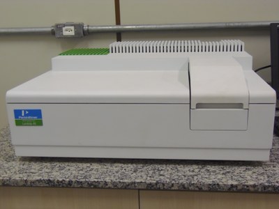 Espectrofotômetro de absorção molecular UV-Vis de varredura com feixe duplo marca PerkinElmer, modelo “Lambda 45” (adquirido com recursos REUNI)