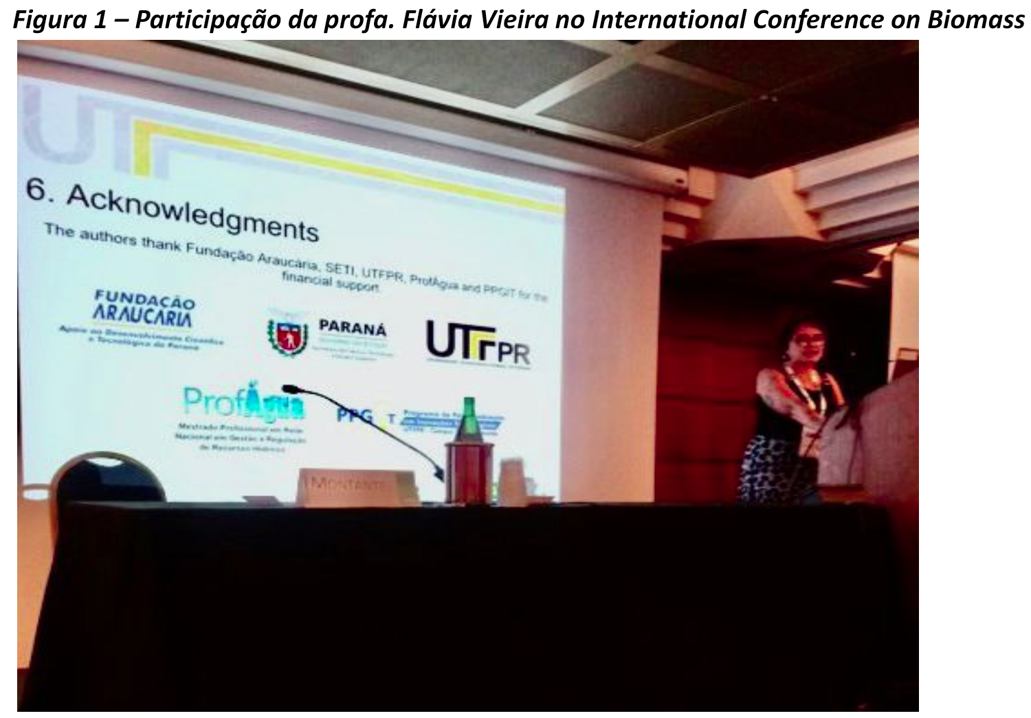 Em todas as suas edições, a IconBM atrai os principais industriais e acadêmicos de todo o mundo e fornece um estado da arte em biomassa, inclusive em aplicações ambientais. Durante o evento, além da participação em palestras e mesas redondas enriquecedoras acerca do tema principal do evento, a docente teve a oportunidade de apresentar em plenário o trabalho intitulado Evaluation of Macrolobium Accifolium and Inga Nobilis seeds in coagulation/flocculation processes, desenvolvido dentro na UTFPR-CM. Além da apresentação neste evento de relevância internacional, o trabalho apresentado ainda poderá ser selecionado para publicação no Chemical Engineering Transactions Journal, indexado pela SCOPUS e SCHOLAR, e classificado como A2 na última avaliação da CAPES