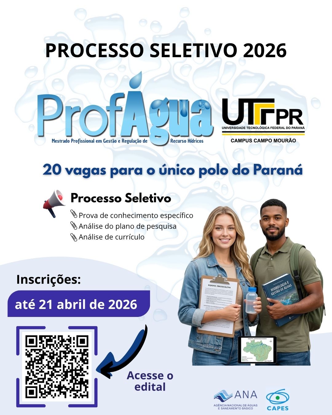 Abertas as inscrições para o Processo Seletivo 2026 do Mestrado ProfÁgua
