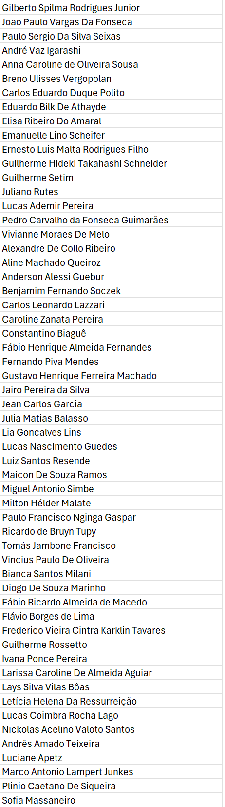 A seguir, as inscrições homologadas para a próxima fase.