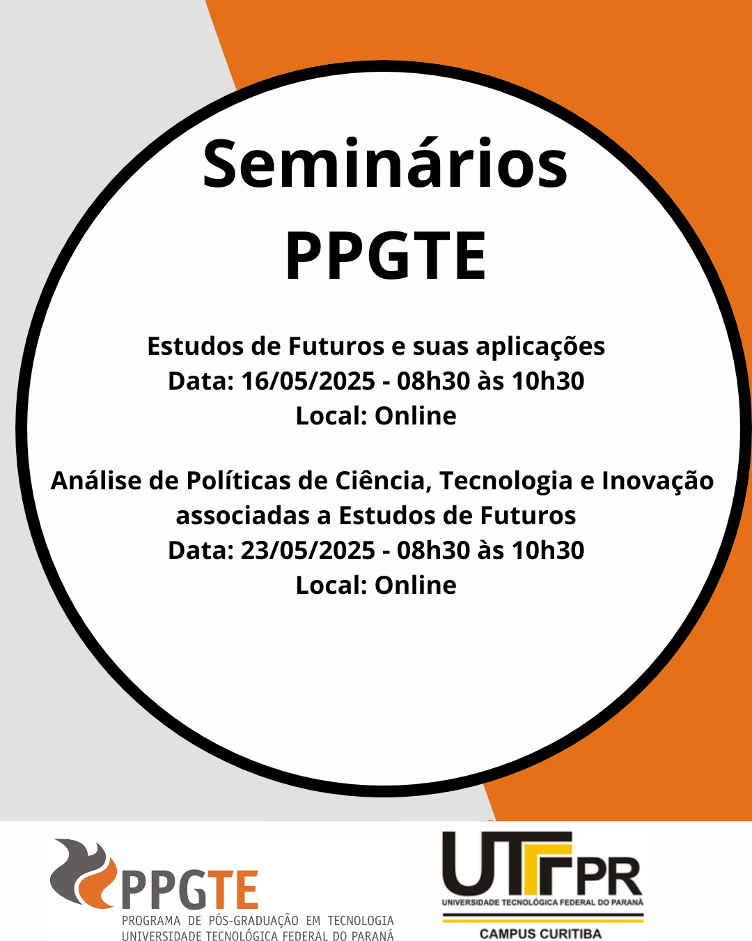 Seminários online do PPGTE, dias 16 e 23 de maio de 2025: