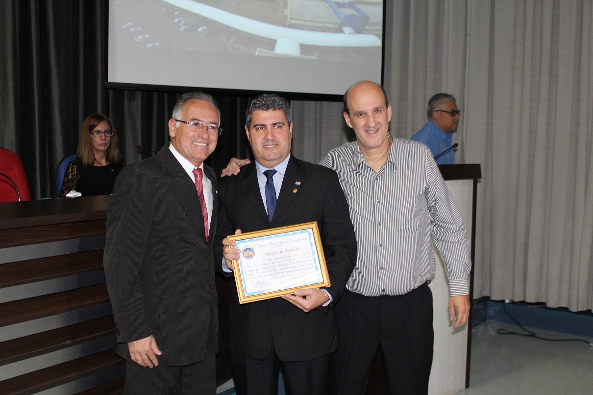 Em sessão especial, realizada no Plenário da Câmara Municipal de Apucarana na noite de ontem (16), vereadores entregaram Moção de Aplausos ao Diretor-Geral do Câmpus Apucarana da UTFPR, professor Aloysio Gomes de Souza Filho. A honraria, proposta pelo vereador Francisley Preto Godoi “Poim”, foi discutida e aprovada pelos vereadores, na sessão ordinária do dia 13 de março.