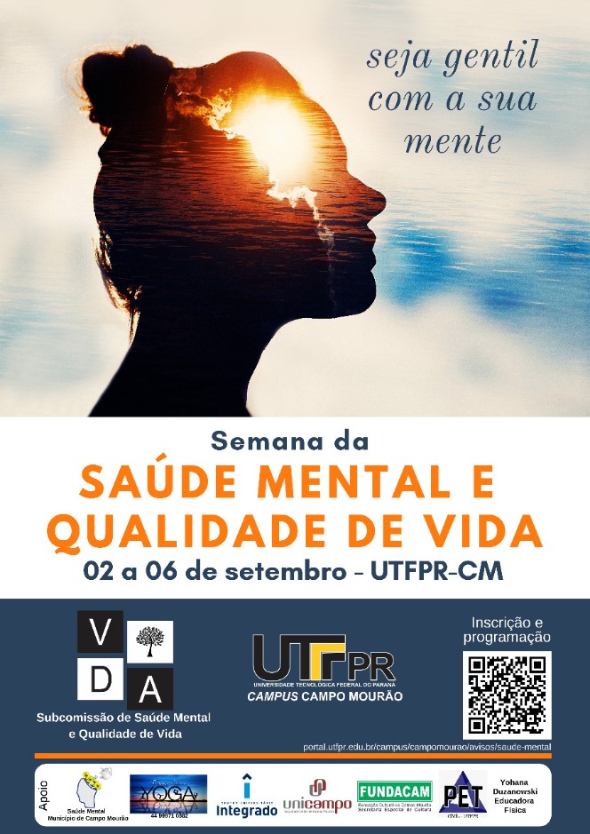 A UTFPR-CM, através da Comissão de Saúde Mental, realiza no período de 2 a 6 de setembro a Semana de Saúde Mental e Qualidade de Vida que contará com diversas atividades.