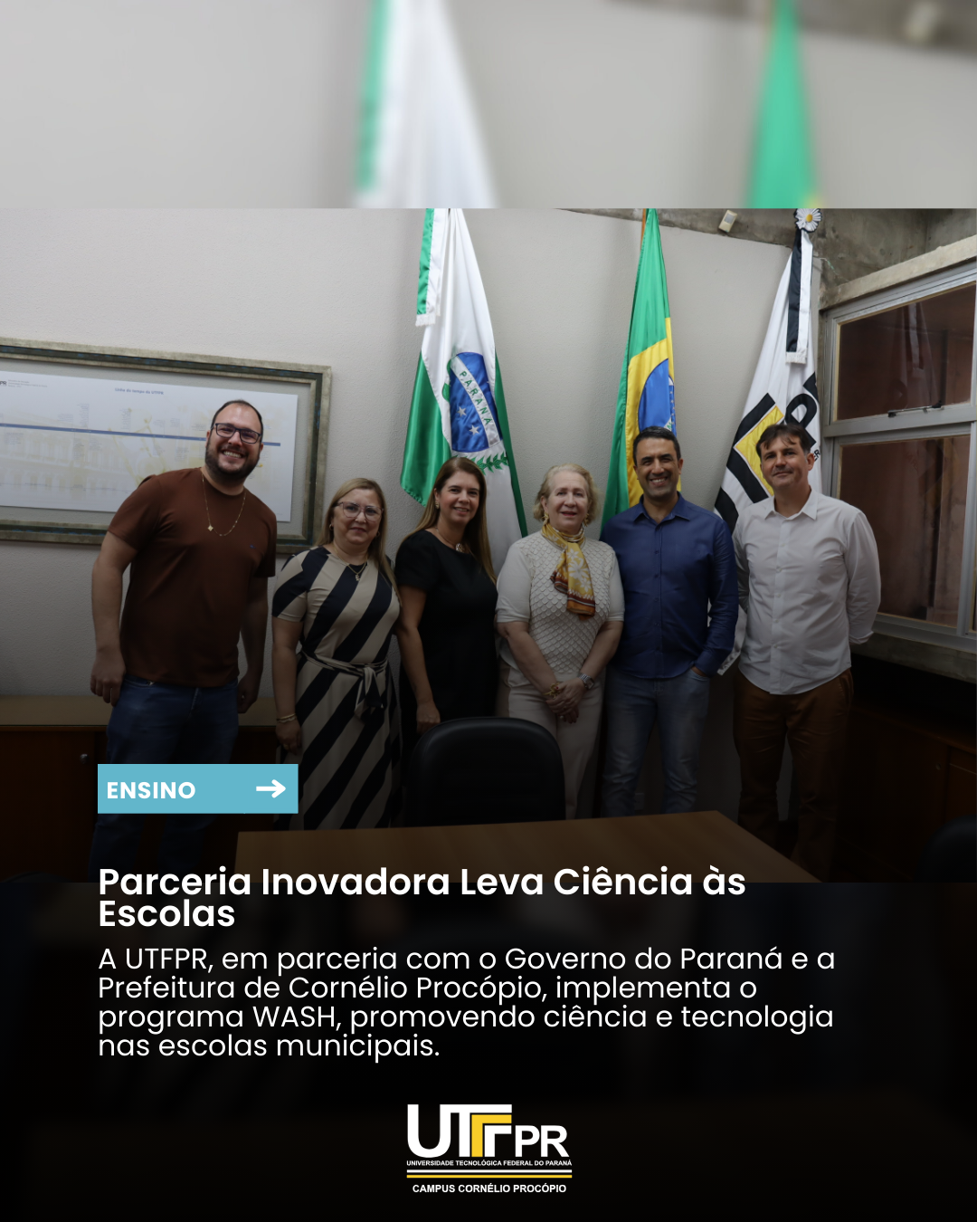 A principal pauta da reunião foi a formalização de uma parceria estratégica entre a UTFPR, a Prefeitura de Cornélio Procópio e o Governo do Estado do Paraná. O objetivo desse acordo é levar o Programa WASH – Workshop Aficionados em Software e Hardware – para as escolas da rede básica de ensino da cidade, promovendo a popularização da ciência e da tecnologia entre os estudantes.