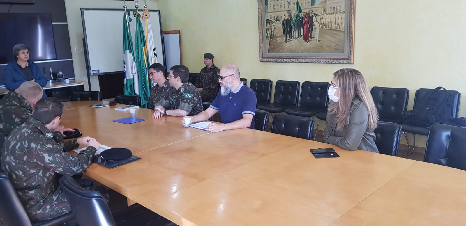 Na primeira quinzena de maio a Reitoria da Universidade Tecnológica Federal do Paraná (UTFPR) recebeu representantes da 5ª região do Exército Brasileiro com o objetivo de elaborar o projeto que possibilitará a oferta de especialização em Gestão da Manutenção. O curso tem como base a formação rápida e eficiente de colaboradores às organizações. Estavam presentes na reunião Rossana Finau, diretora-geral do Campus, Roberto Candido e Marcelo Rodrigues, professores do Departamento Acadêmico de Eletrotécnica (DAELT), Anna Silvia Penteado Setti da Rocha, coordenadora da Pós-graduação Lato Sensu (PROPPG) e os oficiais da instituição militar. O projeto será coordenado pelo professor Marcelo Rodrigues, do DAELT.