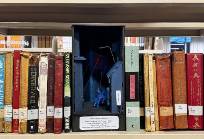 A Biblioteca Central da UTFPR, localizada na Sede Centro, exibe a exposição "Pequenas Experiências Poéticas" até o dia 31 de outubro. Formada por book nooks - decorações em miniatura que se encaixam entre os livros nas estantes - a exposição foi desenvolvida na disciplina Projeto de Experiência Poética, do curso de Bacharelado em Design da UTFPR, ministrada pelos professores Anna Vörös e Ismael Scheffler.