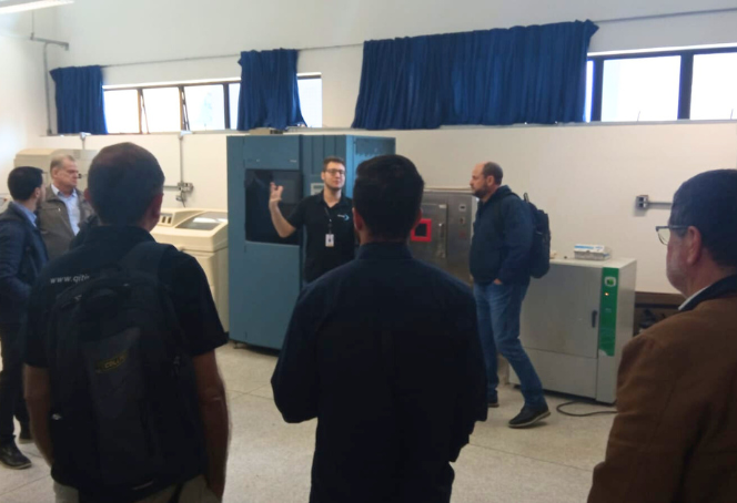 Em seguida, os presentes ouviram as apresentações de doutorandos do PPGEM-CT: José Alexandre de Campos, com seu desenvolvimento de soluções para "super-forja", atuando no Laboratório de Usinagem (bloco K da sede Ecoville); Felipe Gonçalves Di Nisio, apresentando a rede de pesquisa em manufatura aditiva (impressão 3D) para o setor automotivo (NUFER, bloco M); e Rogério Breganon, que pesquisa o desgaste de aços para estampagem a quente no LASC (segundo andar do bloco K).