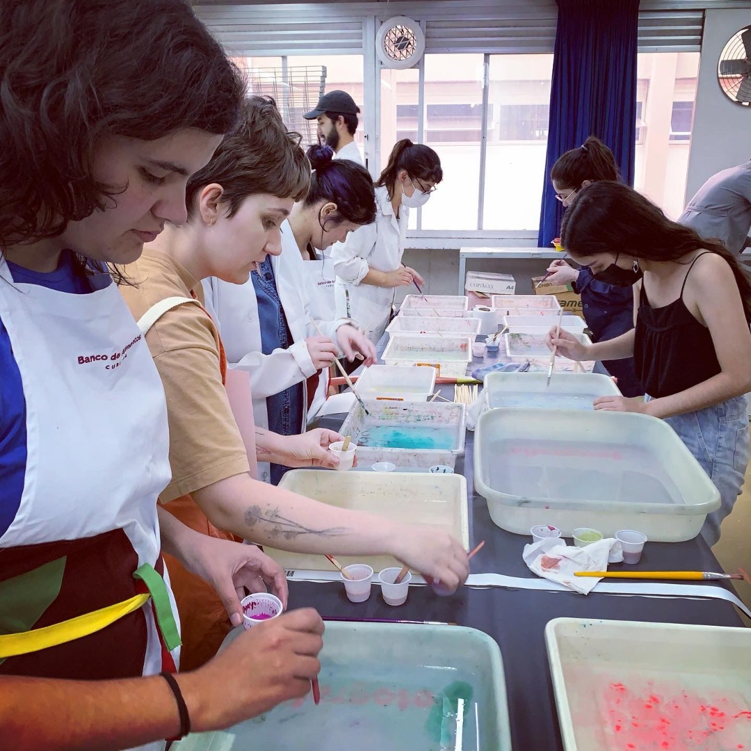 A marmorização, muito usada antigamente para enobrecer livros, é uma técnica artística utilizada para pintar papéis ou tecidos, desenhando com a tinta sobre a superfície da água de maneira única e original. Já na encadernação criativa, os participantes aprenderam a fazer um livro com cadernos costurados e capa dura, utilizando costura francesa. Dessa forma, os alunos têm a oportunidade de desenvolver um ofício manual, entendendo sua estrutura interna e anatômica, compreendendo a produção gráfica de livros, de forma sensorial e experiencial.
