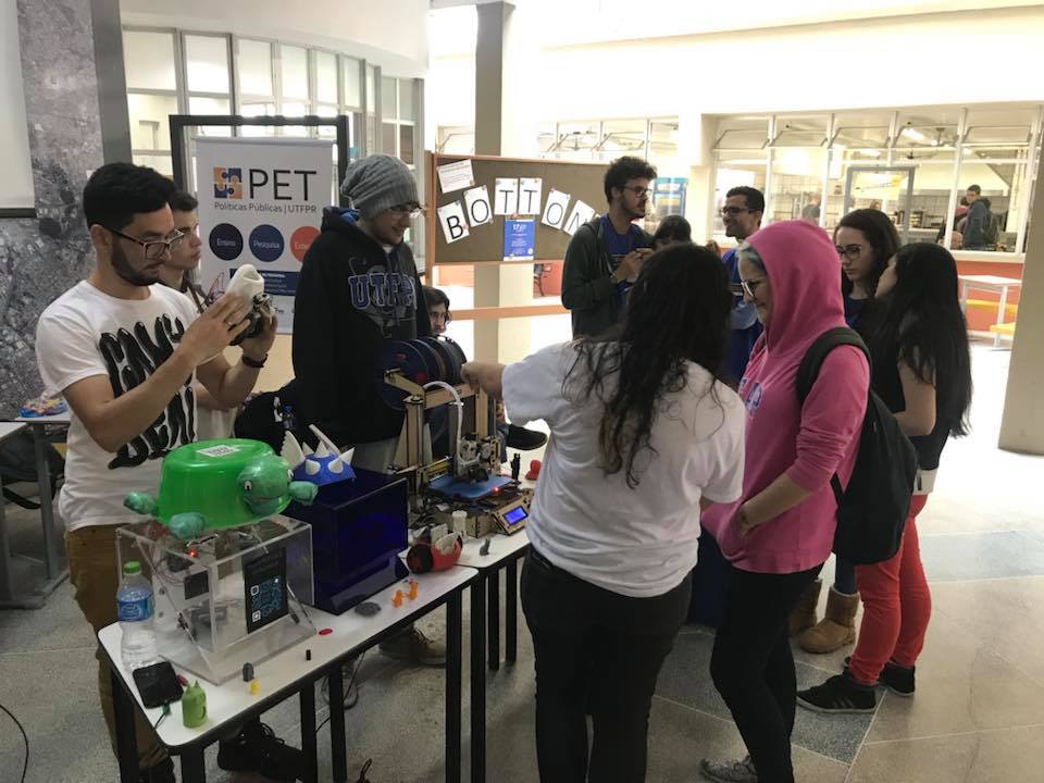A Universidade Tecnológica Federal do Paraná (UTFPR) Câmpus-Curitiba abriu suas portas para mais um evento da instituição: a feira de cursos Hashtag Tecnológica, que aconteceu na última terça-feira (17) nas sedes Centro e Ecoville. Os visitantes começaram a chegar logo de manhã, às 08h30, e a feira encerrou só às 21h. Mais do que mostrar um pouco dos cursos da universidade, o evento deste ano teve por objetivo apresentar também aspectos importantes da vivência universitária no que tange à socialização dos alunos por meio da participação de membros do Movimento Estudantil, Movimento Empresa Júnior (MEJ), de Programas de Educação Tutorial (PETs), atléticas, coletivos, projetos multidisciplinares, baterias e cheerleaders. A feira de cursos foi marcada por muita música, exposições gráficas, tecnológicas e artísticas, além de atividades recreativas e sorteios.