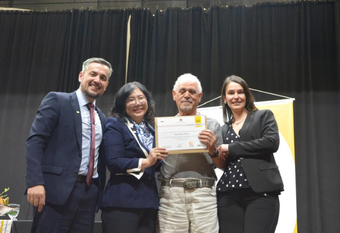 Foram homenageados servidores que completaram 25, 30, 35, 40, 45 ou 50 anos de serviço na instituição entre 1º de janeiro e 31 de dezembro de 2025. O servidor Anibal Timóteo, lotado na Secretaria de Educação Profissional e Graduação Tecnológica do Campus Curitiba (SEDUP-CT) recebeu a homenagem pelos 50 anos na instituição. “Trabalhar por todo esse tempo foi gratificante. Agradeço pela homenagem”, afirmou