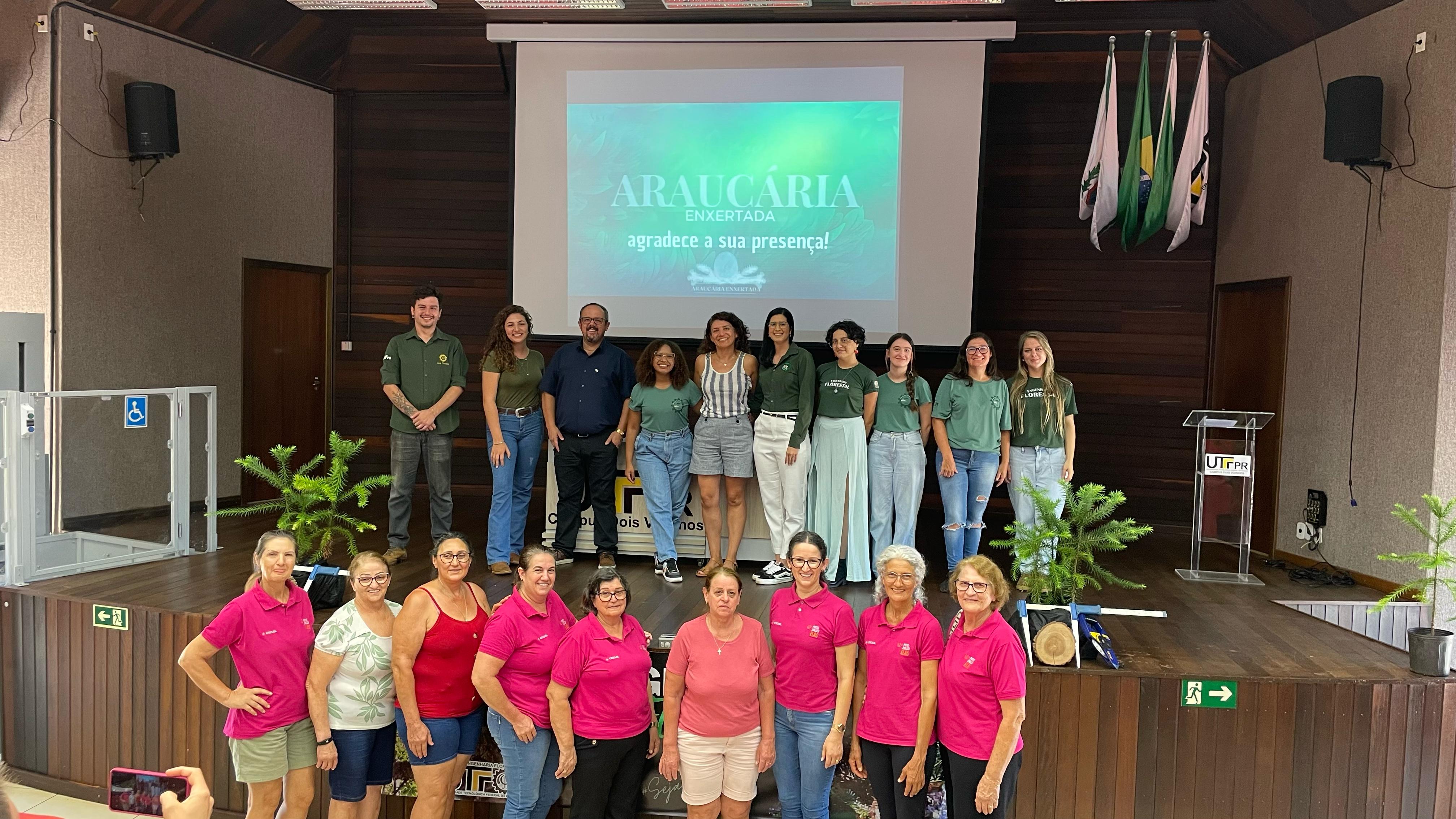 A equipe do projeto Araucária Enxertada, responsável pela organização do evento, é composta pelos bolsistas da Itaipu, Nathan Rafael Coltro, Veriane de Fátima de Luz e Yasmin Laroca, pela bolsista da Fundação Arucária, Geisiane Sousa, e também pelos professores da UTFPR-DV Patrícia Fernandes e Eleandro José Brun. Também auxiliaram na organização do evento alunos do curso de Engenharia Florestal, da disciplina extensionista Produtos Florestais Não-Madeiráveis.