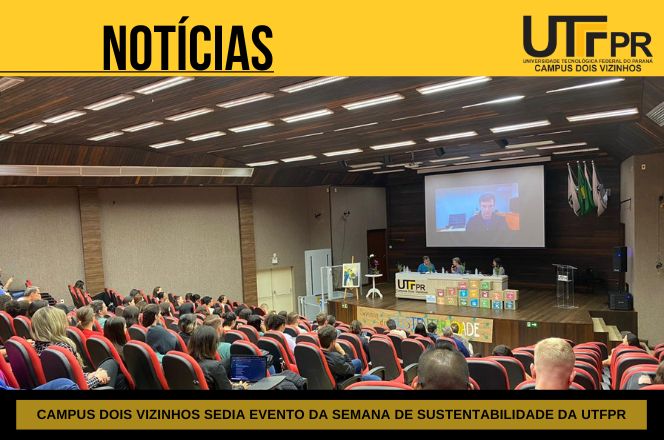 Nos dias 26 e 27 de outubro de 2023, o Campus Dois Vizinhos sediou evento da Semana de Sustentabilidade de UTFPR. O evento contou com uma intensa agenda de atividades e reuniu representantes dos 13 campi de forma presencial e remota, representantes de diversos segmentos da comunidade externa, Prefeitura Municipal do Cruzeiro do Iguaçu, Colégios e Escolas locais e contou com a presença do Diretor do Departamento de Educação Ambiental e Cidadania do Ministério do Meio Ambiente e Mudança do Clima, o Doutor Marcos Sorrentino.