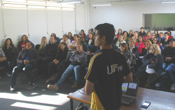 Professores e servidores do Colégio Estadual Mário de Andrade estiveram na UTFPR na quinta-feira (26) para participar de uma capacitação em Tecnologias aplicadas para a Educação. As oficinas foram ministradas por estudantes do curso de Licenciatura em Informática. Na sexta-feira (27) foi a vez dos professores do Colégio Estadual Eduardo Virmond Suplicy.