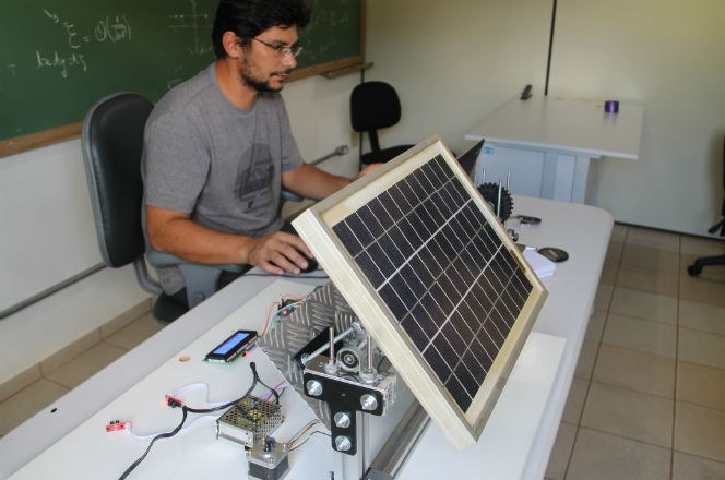 “Com base em equações para prever a posição do sol, um microcontrolador aciona motores que movimentam e direcionam a placa solar de tal modo que a placa sempre esteja perpendicular aos raios de luz”, explica o professor Bertoldo.