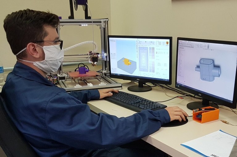 Pesquisadores do Câmpus Ponta Grossa estão trabalhando em um projeto de ventilação pulmonar inovador. Isso, porque a iniciativa prevê a adaptação de máscaras de mergulho snorkel com impressão 3D para auxiliar na ventilação pulmonar de pacientes internados com problemas respiratórios, principalmente causados pela COVID-19. “O objetivo é usar essas máscaras em pacientes com dificuldades respiratórias, mas que ainda não precisem de uma intervenção mais agressiva como a intubação, por exemplo”, explica o coordenador do projeto, professor Thiago Antonini Alves.