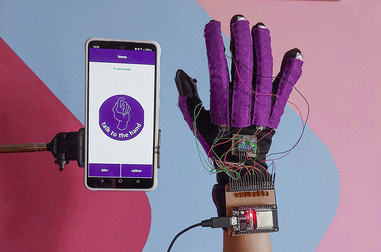 Os estudantes Bruna Araújo Pinheiro, Caroline Rosa da Silva e Moises de Paulo Dias criaram, então, uma luva tradutora. Diferente das já existentes no mercado, o protótipo desenvolvido pelos alunos é mais simples e pode ser usado com um aplicativo de celular. Montada com sensores e um microcontrolador responsáveis por captar os movimentos da mão, o equipamento consegue interpretar as letras do alfabeto de libras e enviá-las via bluetooth para um aplicativo de celular, que traduz e vocaliza as palavras.