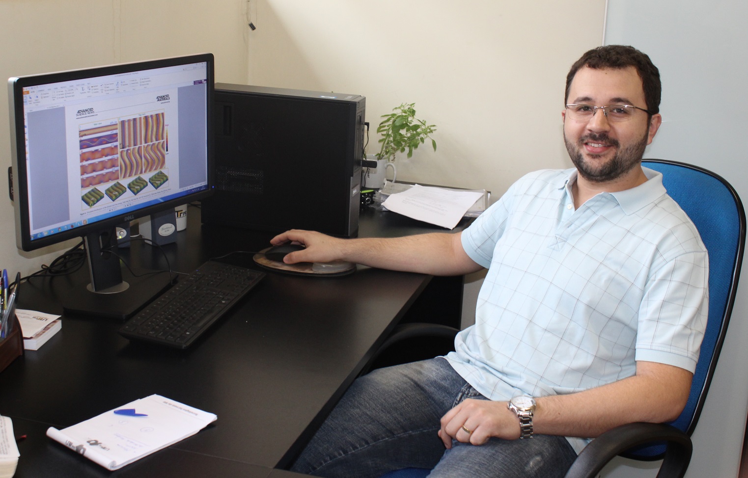 O artigo, intitulado “Controllable Dynamic Zigzag Pattern Formation in a Soft Helical Superstructure”, apresenta os resultados do trabalho realizado pelo professor e o grupo de pesquisas que estuda como criar e controlar padrões sintéticos que possam ser utilizados no desenvolvimento de materiais inteligentes com aplicações em dispositivos eletro-óticos e em biomateriais.