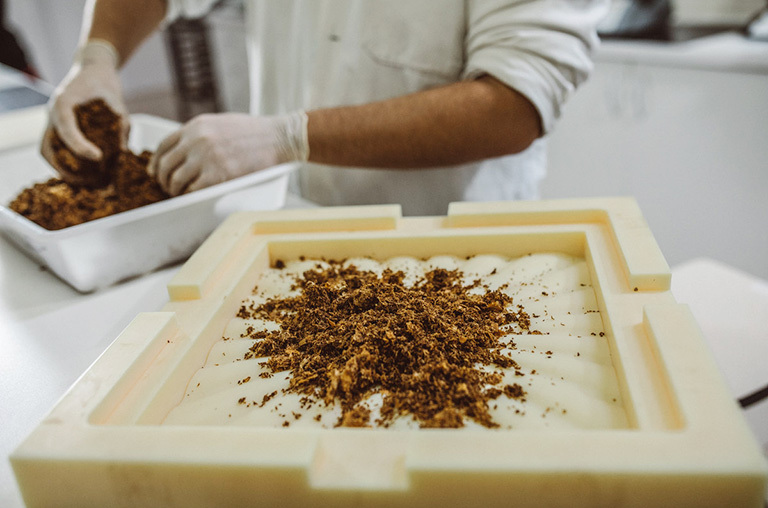 “Nós produzimos nosso material a partir de cascas, bagaços, talos, serragem, entre outros, que servem como fonte de nutrientes e suporte para o crescimento de um fungo. Esse crescimento é feito em moldes e o produto final adquire o formato do molde utilizado. Por isso dizemos que desenvolvemos uma tecnologia que nos permite gerar soluções sustentáveis para vários mercados”, explica o professor orientador do projeto Eduardo Bittencourt Sydney.
