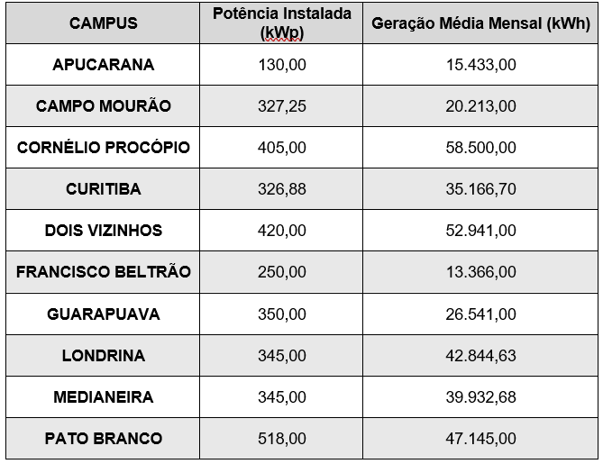 Para entender melhor, esse montante gerado seria como se a UTFPR levasse energia para 2.185 moradias atendidas pela Copel. O valor mensal médio economizado é de R$ 221.522,90, gerando uma economia de R$ 2.658.274,76 ao ano.