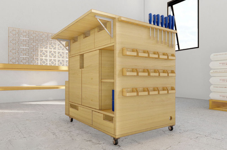 Os alunos do curso de Arquitetura e Urbanismo do Campus Curitiba , Gabriel Luiz Tiepermann e Luís Gustavo Mendes, desenvolveram uma solução multifuncional e transportável para atender diversas necessidades de um canteiro experimental. A proposta foi pensada para aplicação na marcenaria, carpintaria e suporte a diferentes tarefas.