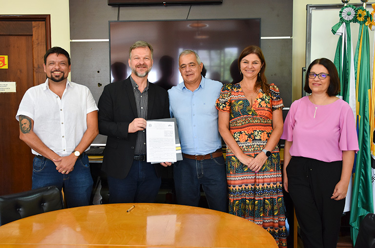 A assinatura aconteceu na sala de reuniões da Reitoria, com a presença do reitor Marcos Schiefler, do pró-reitor adjunto de graduação Guilherme Schneider, da vice-reitora Tangrini Assmann, o presidente e a diretora administrativa da Funtef-PR, Jorge Luiz Riechi e Patrícia Mokrzycki, respectivamente.