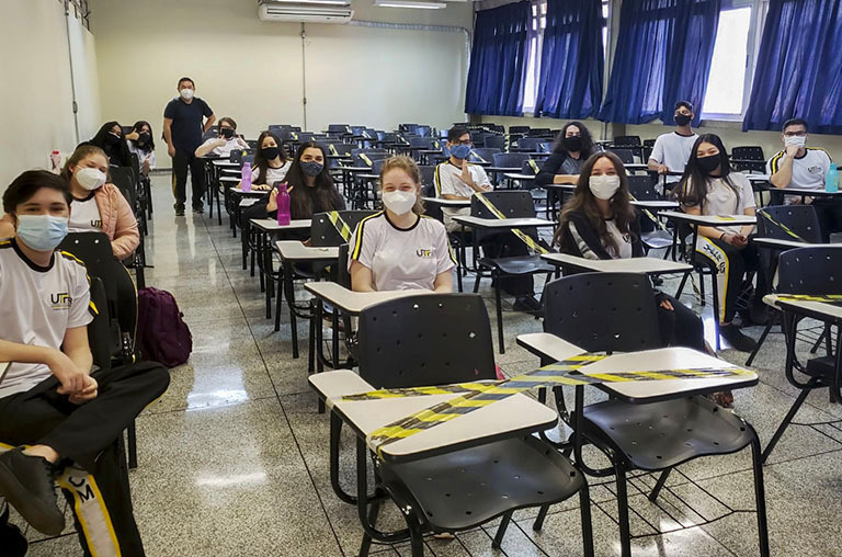 A Universidade Tecnológica Federal do Paraná (UTFPR) iniciou o segundo semestre letivo de 2021 nesta quinta-feira (23) com a retomada de aulas presenciais após 18 meses desde a suspensão das atividades por conta da pandemia de Covid-19, em março de 2020. O retorno à Universidade está sendo feito somente com o ensino híbrido, respeitando-se o protocolo de biossegurança e de forma gradual. A maior parte das ofertas de disciplinas neste semestre (aproximadamente 97%) ainda foi na modalidade de ensino remoto.